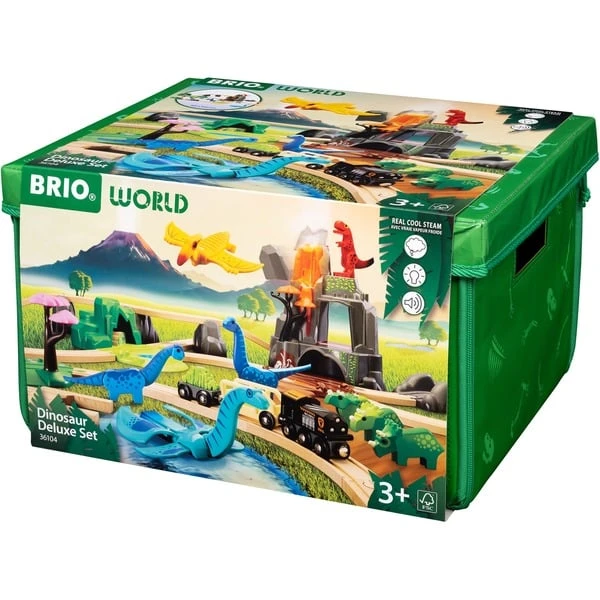 Mit BRIO die Welt der Dinosaurier entdecken! Dieses große Set mit 44 Teilen bietet eine ganze Welt voller Dino-Spielspaß, ausgestattet mit einem Vulkan, der mit Licht, Sound und realistischen Dampfeffekten ausbricht sowie acht verspielten Dinosauriern in leuchtenden Farben und mit beweglichen Gliedmaßen. Das Set kommt in einer praktischen Aufbewahrungsbox, die sich in eine Spielmatte verwandeln lässt. Und selbstverständlich lässt es sich problemlos mit anderen, separat erhältlichen Sets aus der BRIO World kombinieren.Art.-Nr.: 100057760