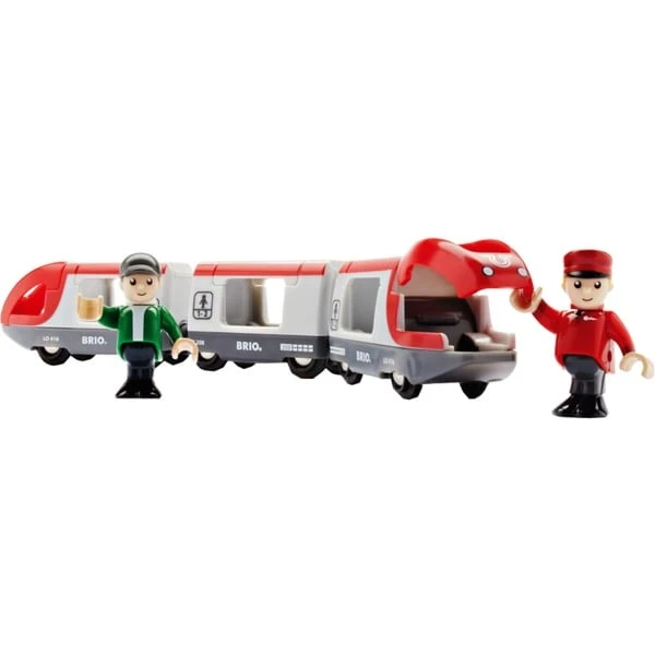 Bitte einsteigen! Dreiteiliger Personenzug inklusive Lokführer und Reisegast. Der rote Linienzug ist startbereit, um Passagiere zu ihrem Zielbahnhof zu bringen.Art.-Nr.: 1287532