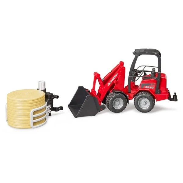 Seit über 50 Jahren entwickelt Schäffer Radlader für Landwirtschaft, sowie Garten und Landschaftsbau. Die 2000er Kompaktklasse gehört bei Schäffer zu den erfolgreichsten Baureihen überhaupt. Höchstleistungen auf engstem Raum zu bieten, das ist die Prämisse für diesen Lader. Dieses wichtige und überzeugend vielseitige Fahrzeug für jede erfolgreiche Landwirtschaft gibt es im Maßstab 1:16 jetzt in Kombination mit einer Ballengreifzange neu bei BRUDER. Für maximale Wendigkeit besitzt das Fahrzeug, wie auch das Original, eine funktionierende Knicklenkung und auch der Ladearm und Schaufel funktionieren wie beim großen Vorbild. Für die Sicherheit der bworld Figur, welche bequem in den Fahrersitz passt, ist ein massiver Überrollbügel vorhanden. Für den Transport und die Verteilung von Stroh und Heu ist die neue Ballgreifzange ein überaus nützlicher Helfer, der jedem kleinen Landwirt dabei hilft, den mitgelieferten Rundballen in den Stall zu transportieren und abzuladen. Die Greifzange öffnet und schließt sich durch einfaches drehen am oberen Stellrad.Art.-Nr.: 1501191