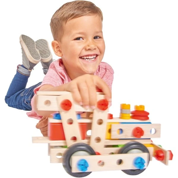Eichhorn Constructor 100-tlg.: Baue dir aus dem 100-teiligen Eichhorn Constructor Set ein tolles Modell. Mit Hilfe der mitgelieferten Werkzeuge, der Anleitung und den Schrauben werden die 100 Holzteile und Verbindungselemente miteinander fixiert und das Modell entsteht. Das Zusammenfügen fördert und schult das räumliche Denken und die Feinmotorik. Modellvarianten bei diesem Set: große Lok, Flugzeug, Abschleppwagen, Roboter. Für Kinder ab 4 Jahren geeignet. Für die Herstellung der Eichhorn Artikel wird Holz aus nachhaltiger Forstwirtschaft verwendet. Art.-Nr.: 1845195