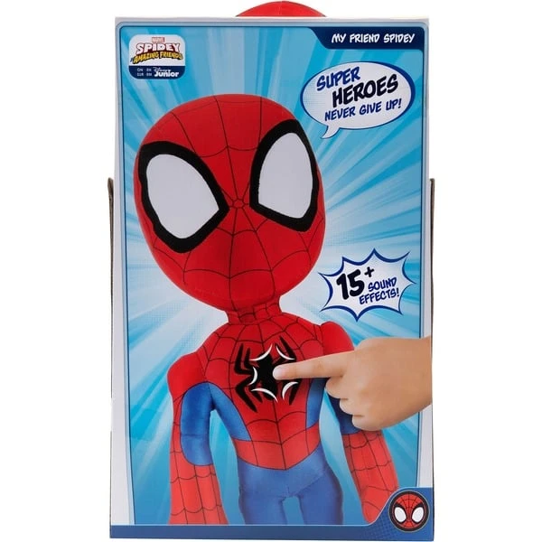 Es ist Spidey-Zeit! Schwinge dich in das nächste Spidey-Abenteuer mit dieser etwa 40 cm großen Plüsch-Figur mit Sound. Drücke die Spinne auf der Brust des Plüschs, um einen originelle Sprüchen zu hören, darunter „Schwingen wir ’ne Runde zusammen!“, „Weiter so, Team Spidey!“ und viele weitere! Die vorgestellten Sprüche stammen direkt aus der Serie „Spidey und seine Super-Freunde“. Eine tolle Figur für Spidey-Fans!Art.-Nr.: 100105987