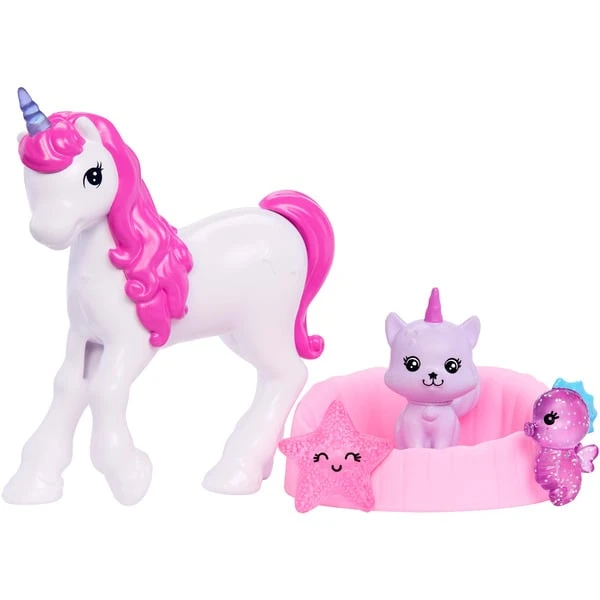 Dieser Barbie-Adventskalender mit 24 Überraschungen zum Thema Fantasie sorgt für jede Menge Weihnachtszauber! Hinter dem ersten Türchen befindet sich eine Barbie-Modepuppe mit langen, rosa Haaren, die für mehr Überraschungen bereit ist. Kinder können die Barbie-Puppe mit der Schwanzflosse, dem langen Rock oder den ansteckbaren Flügeln in eine Meerjungfrau, eine Prinzessin oder eine Fee verwandeln. Außerdem gibt es in diesem Kalender verschiedene Fantasy-Freunde zu entdecken: ein Mini-Einhorn, Kätzchen, Seestern und Seepferdchen. Hinzu kommt ein ein Tierbettchen für süße Träume. Weitere Zubehörteile sind zwei Paar Schuhe, ein Kamm und ein Haarband. Ein Armband für Kinder mit einem Stern-Anhänger ist ebenfalls enthalten.Art.-Nr.: 100126319