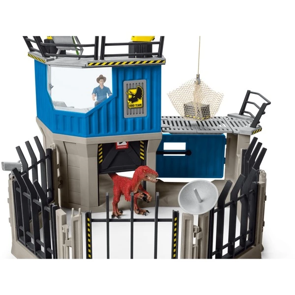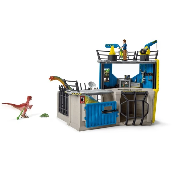 TEAM DINO, bestehend aus den 3 Colby Brüdern MAXX, LUIS und FLYNN machen sich auf den Weg um die Geheimnisse zu lüften! MAXX, der Anführer, hat auf der großen Dino-Forschungsstation von Schleich Dinosaurs jede Menge zu tun. Die Station bietet neben der Kommandozentrale eine Aussichtsplattform mit schwenkbarer Betäubungspfeil-Kanone sowie einen Kran. Im unteren Bereich befindet sich ein Quarantäne-Raum für frisch eingefangene Dinos. Hier können sofort die ersten Untersuchungen gemacht werden und dann die Dinos durch die Falltür ins Gehege gelassen werden. Oh nein! Der Velociraptor ist ausgebrochen! Kann MAXX ihn mit seiner Stabwaffe wieder einfangen? Das Spielset bietet jede Menge Zubehör und 2 Dinos in cooler Bemalung. Entdecke die gesamte Schleich Dinosaurs Welt und die spannenden Abenteuer der Colby Brüder unter www.schleich-dinosaurs.comArt.-Nr.: 1832488