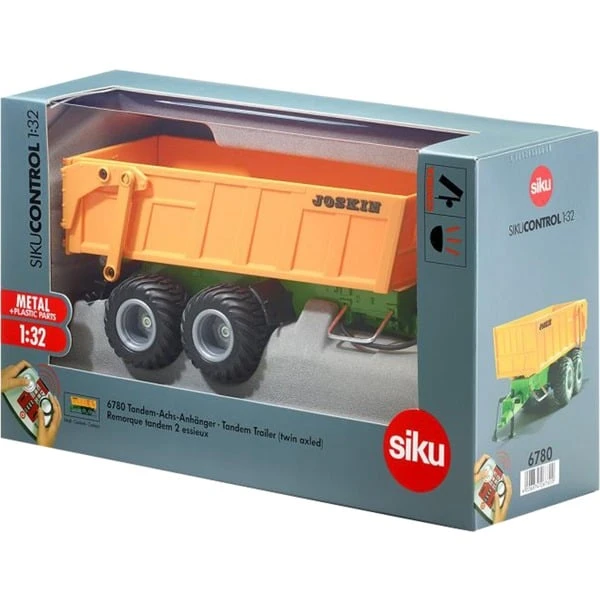 Elektronisch gesteuerter Tandem-Achs-Anhänger. Die Mulde des Anhängers ist elektronisch nach hinten kippbar. Hierzu kann das bereits vorhandene Fernsteuermodul genutzt werden. Im Heckbereich des Anhängers sorgen rote und orangene LED’s für Rücklicht und Blinker. Dieser Artikel wird über ein mitgeliefertes Datenkabel vom Anhänger zum Traktor mit Energie versorgt. Ein weiterer Akku mit Ladegerät wird für den Spielbetrieb nicht benötigt.Art.-Nr.: 1187594