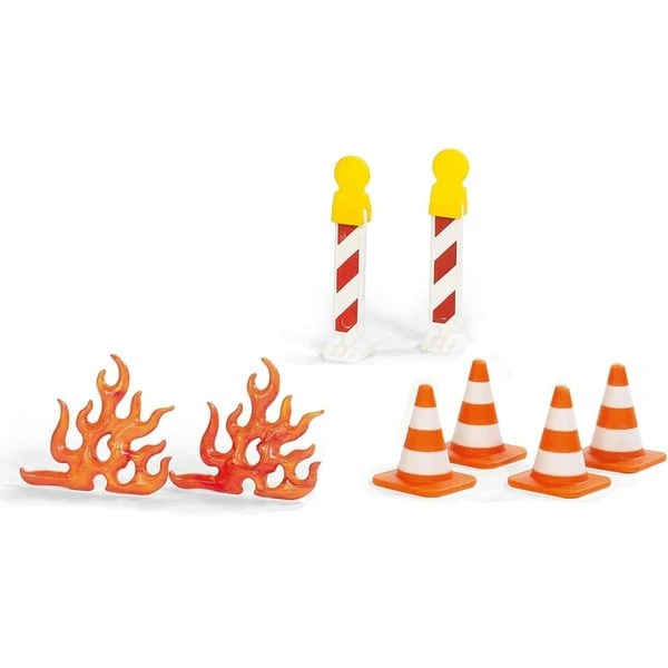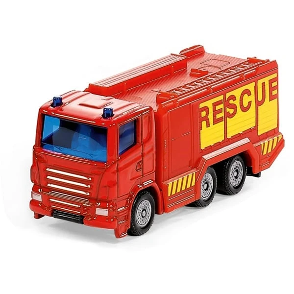 Ein Notruf geht bei der Zentrale ein: Es brennt im Krankenhaus! Die Feuerwehr macht sich bereit für den Einsatz. In diesem neuen Feuerwehr-Set von SIKU sind drei einzigartige Einsatzfahrzeuge vereint. Der drei-Achs-LKW mit Metall-Fahrerhaus ist mit einer Hubrettungsbühne ausgestattet, die um 360 Grad drehbar ist und über drei Knickgelenke verfügt. Damit kann die Leiter mit angehängtem Korb auf eine stattliche Höhe gefahren und der Korb entsprechend ausgerichtet werden. Das macht Rettungen auch aus großen Höhen viel einfacher. Unterstützt wird er dabei vom Löschfahrzeug, das vor Ort die Bekämpfung des Feuers übernimmt. Beide Fahrzeuge verfügen über High-Speed Räder, die sie blitzschnell zum Einsatzort fahren lassen. Zum Transport und zur Überwachung aus der Luft ist darüber hinaus auch ein Flugzeug im Feuerwehr-Design enthalten. Mit klappbaren Flügeln und drehbarem Propeller ist dieses Luftrettungsgefährt ein unerlässlicher Partner bei schwierigen Einsätzen. Im Set ebenfalls enthalten sind Pylonen und Barken, um den Einsatzort abzusperren. Damit es möglichst realistisch wird, können sich kleine Feuerwehrfans auch über Flammen freuen. Diese Feuerwehrset darf ab sofort in keiner Rettungsleitstelle mehr fehlen!Art.-Nr.: 1728771