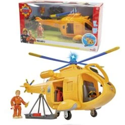Tauche ein in die aufregenden Rettungsmissionen von Feuerwehrmann Sam und seinen Heldenmut, der die Herzen von Kindern weltweit erobert. Bei Rettungsmissionen in den Bergen ist Pilot Tom Thomas von der Bergwacht mit seinem Helikopter Wallaby 2 sofort zur Stelle – immer bereit für den Einsatz! Per Knopfdruck am Fahrzeug setzen sich die Rotoren in Bewegung und der passende Sound ertönt. Benötigt werden dazu drei R03 Batterien (nicht im Set enthalten). Damit Pilot Tom auch in der Dunkelheit auf Rettungsmission gehen kann, ist Wallaby II mit Licht ausgestattet. Eine mechanische Seilwinde darf beim Einsatz ebenfalls nicht fehlen! Der Hubschrauber bietet Platz für sechs Figuren im Passagierraum und seine Türen lassen sich öffnen. Im Set enthalten ist eine Figur von Tom Thomas.Art.-Nr.: 100125198