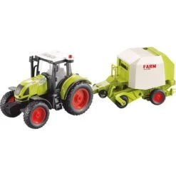 Ein tolles Landeswirtschafts-Gespann fürs Kinderzimmer: Dieser Spielzeug-Traktor hat eine Rundballenpresse im Schlepptau. Insgesamt ist diese Kombination im Maßstab 1:16 etwa 45 Zentimeter lang. Mit an Bord ist außerdem eine Licht- und Soundfunktion. Batterien sind im Lieferumfang enthalten.Art.-Nr.: 100094114