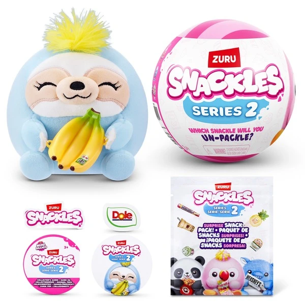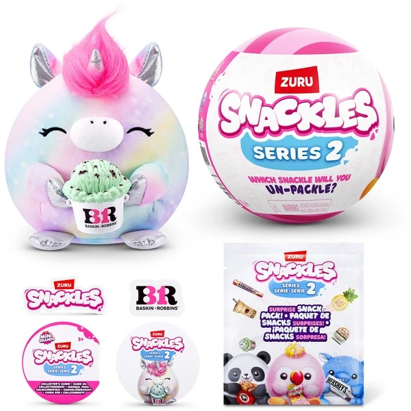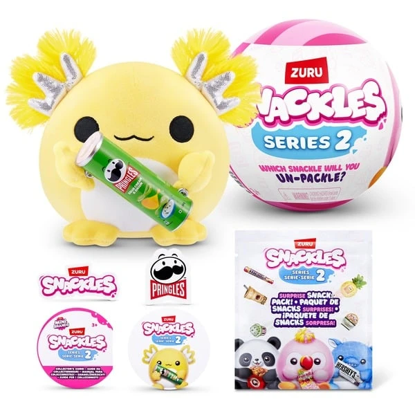 Snackles sind superweiche, ultraknuddelige Plüschtiere, die deine Lieblings-Minimarken in ihren Armen halten! Jedem Snackle liegt ein Comic mit der Geschichte bei, wie sein Snack zu seinem Lieblings-Snack wurde. Es gibt 11 kleine Snackles in dieser Serie zum Sammeln – welcher geliefert wird, ist eine Überraschung. Wen wirst du entdecken – den Mentos-Drachen oder das Pringles-Küken? Oder einen ganz anderen knuddeligen Freund? Art.-Nr.: 100115915